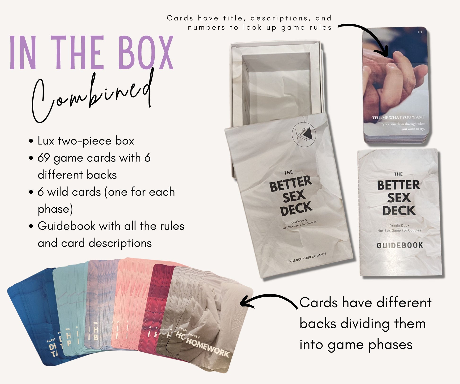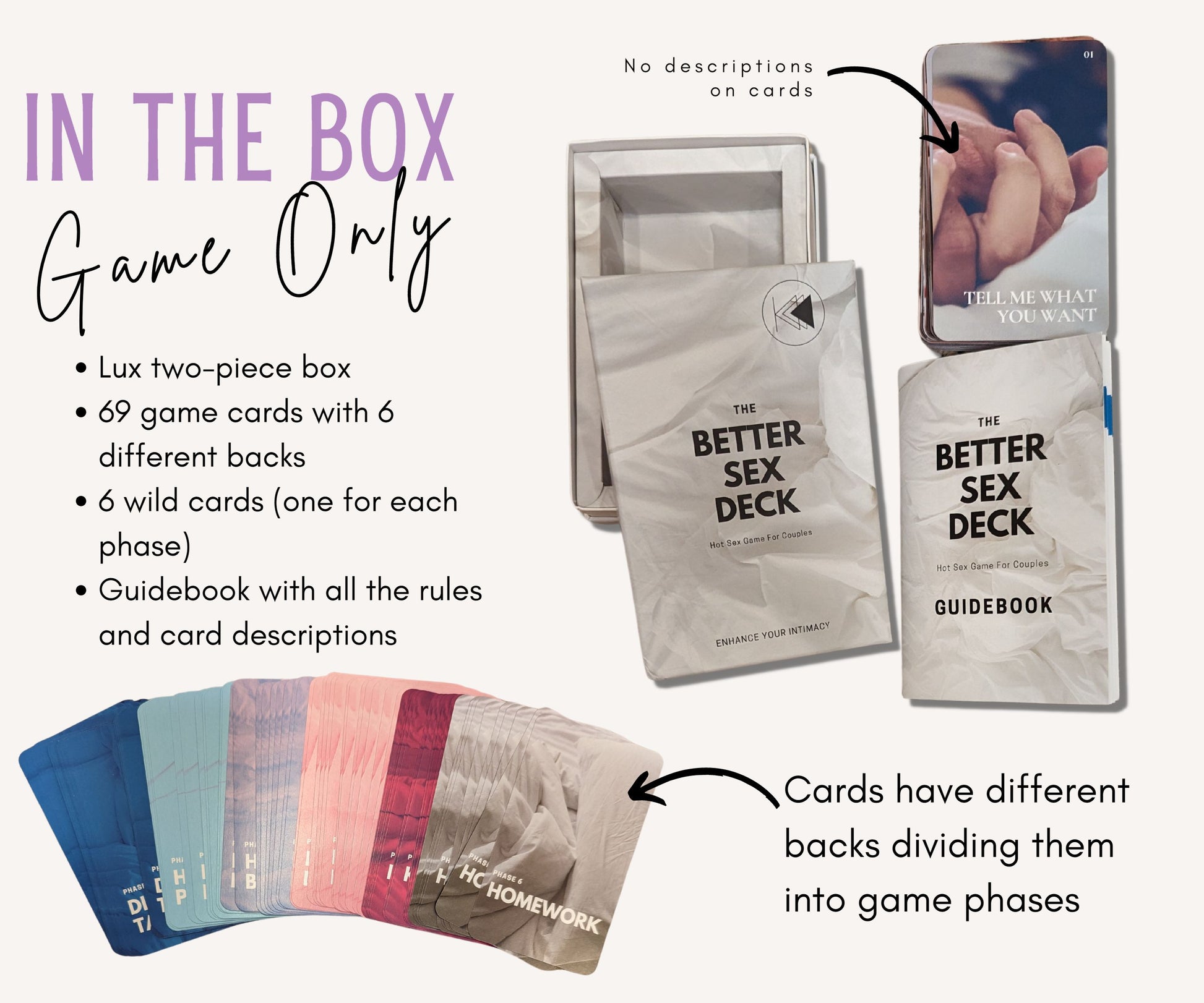 As a sexy game for couples, this deck guides you through building intimacy and desire and truly opening up to your partner.